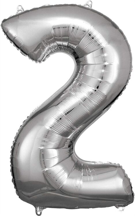 Grosse Zahl 2 Silber Folienballon N34 Ve