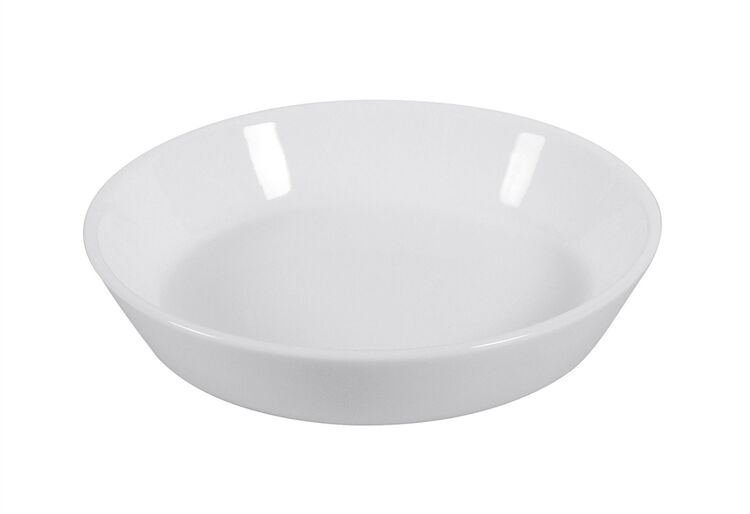 aus reinweißem und hoch kantenfestem Porzellan, zum Zubereiten und Servieren perfekt geeignet, ob für Aufläufe, Soufflés, Schmorgerichte, Gratins, Kuchen oder Pasteten, flache Unterschalen können sowohl beim Dünsten oder Schmoren im Backofen als Deckel oder auf dem Tisch als Servier- oder Vorlegeplatte verwendet werden, Souffléformen können auch als Dip- oder Saucenschalen verwendet werden, mit Banderole
