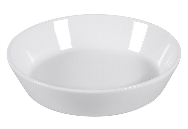 aus reinweißem und hoch kantenfestem Porzellan, zum Zubereiten und Servieren perfekt geeignet, ob für Aufläufe, Soufflés, Schmorgerichte, Gratins, Kuchen oder Pasteten, flache Unterschalen können sowohl beim Dünsten oder Schmoren im Backofen als Deckel oder auf dem Tisch als Servier- oder Vorlegeplatte verwendet werden, Souffléformen können auch als Dip- oder Saucenschalen verwendet werden, mit Banderole