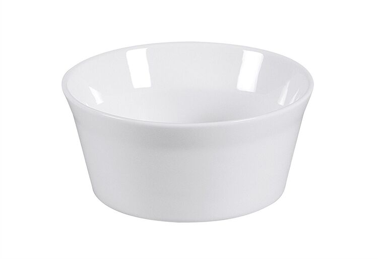 aus reinweißem und hoch kantenfestem Porzellan, zum Zubereiten und Servieren perfekt geeignet, ob für Aufläufe, Soufflés, Schmorgerichte, Gratins, Kuchen oder Pasteten, flache Unterschalen können sowohl beim Dünsten oder Schmoren im Backofen als Deckel oder auf dem Tisch als Servier- oder Vorlegeplatte verwendet werden, Souffléformen können auch als Dip- oder Saucenschalen verwendet werden, mit Banderole