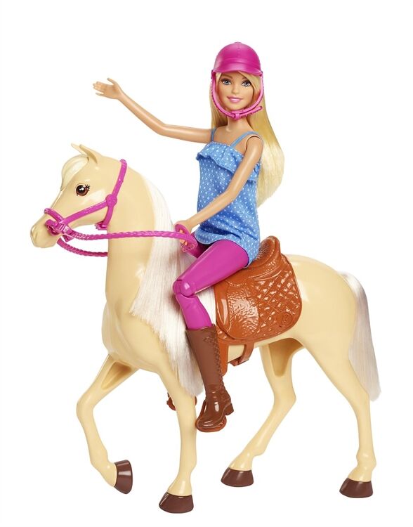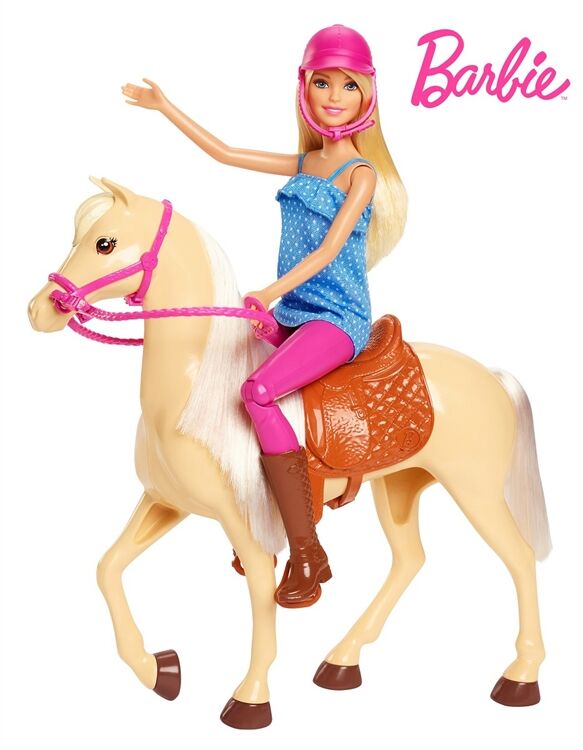 Wenn Barbie auf ihrem Pferd unterwegs ist, gehts im Galopp in eine Fantasiewelt voller Abenteuer! Sie hat ein wunderschönes Pferd mit Sattel und Zaumzeug, sodass die beiden Freunde bestens gerüstet sind, um aufspannende Entdeckungsreisen zu gehen, Einfach die Barbie-Puppe auf das Pferd setzen und schon kann es losgehen, Barbie trägt ein lässiges Reitoutfit mit Stiefeln und Helm und hat bewegliche Knie, damit sie auf dem Pferd sitzen kann, Kinder genießen es, zusammen mit diesen beiden Freunden loszureiten und die Welt zu entdecken denn wenn Mädchen mit Barbie spielen, können sie alles sein, was sie sich vorstellen! Enthält eine Barbie-Puppe mit Moden und Zubehörteilen, ein Pferd mit abnehmbarem Zaumzeug sowie einen Sattel und einen Helm für die Puppe, Die Puppe kann nicht von alleinstehen, Abweichungen in Farbe und Gestaltung vorbehalten,