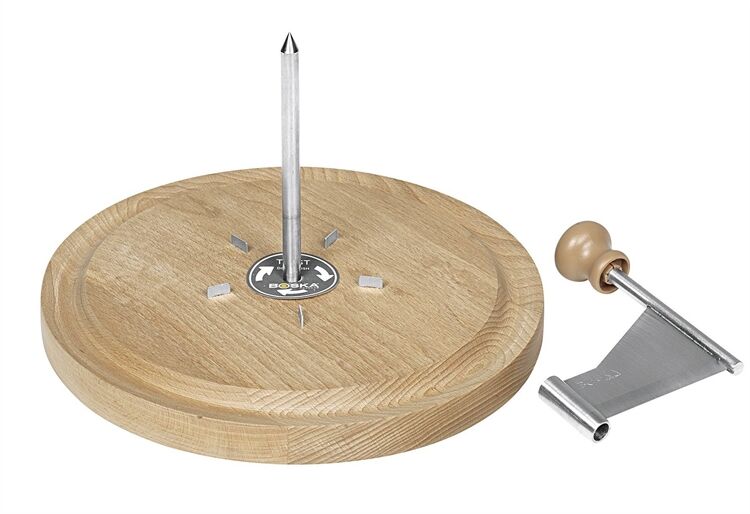 Mit prächtigen, geschmackvollen Käselocken sorgen Sie für die optimale Abrundung Ihrer Gerichte. Herrlich zu italienischer Pasta oder einem frischen Salat. Der Käseschaber Amigo mit Edelstahl-Messer eignet sich für Tête de Moine oder Schokolade. Dank der 5 Zapfen im Sockel bleibt der Käse für Sie besonders griffig liegen. Erfahren Sie es selber: Ihr Käse liefert perfekte Locken und Ihre Gerichte schmecken noch besser! Sie drehen spielerisch an der Handkurbel und der Käseschaber schabt wie von selber prachtvolle Käselocken. Sofort bereit, um stimmungsvoll serviert zu werden. Verwenden Sie die Glocke, um die Aromen des Käses zu bewahren. So bleibt der Käse auch länger frisch. Der Käseschaber lässt sich einfach montieren und demontieren. So nimmt er wenig Platz ein und ist im Handumdrehen wieder auf dem Tisch. Wählen Sie den leckeren Tête de Moine aus der Schweiz zu einem Glas Sherry. Für Süßmäuler legen Sie ein kräftiges Stück Schokolade auf den Käseschaber Amigo. Einfach genießen! Drehen Sie den Käseschaber im Uhrzeigersinn und nehmen Sie Käse, der frisch aus dem Kühlschrank kommt. Der Geschmack ist herrlich!