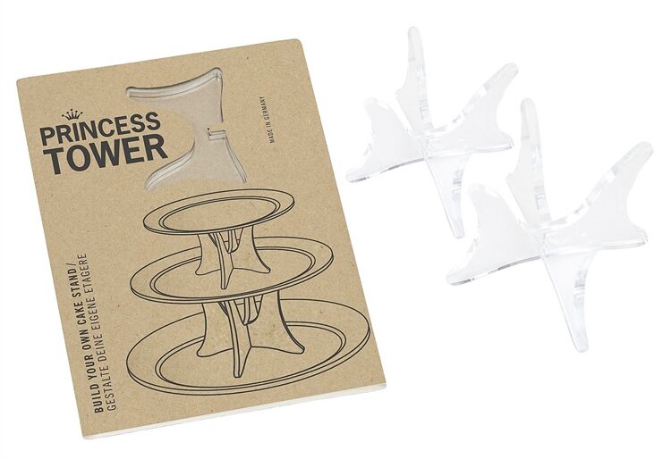 Etageren sind wieder voll im Trend. Bis vor kurzem mit etwas verstaubtem Image, tauchen Sie überall wieder auf. Gern wird Gästen etwas Kleines, Leckeres präsentiert und da kochen und backen selber in ist wie nie, erlebt auch die Etagere ihre Renaissance. Aber sie nehmen in der Regel viel Platz weg und sind ein echter Staubfänger. Das stört im Alltag doch sehr. Mit dem Princess Tower kann das Lieblings-Geschirr nun individuell und kreativ zur eigenen Etagere kombiniert werden. Princess Tower lässt sich einfach zusammenstecken. Die Verbindungselemente aus Acryl geben dem Geschirr stabilen Halt und sind mit jedem Porzellan kombinierbar. Einfach drei Teller (idelaerweise verschieden große) nehmen und daraus eine dreistöckige Etagere bauen. Nach Benutzung wird sie einfach auseinander gebaut, in einer Schublade verstaut und klaut so keinen Platz mehr. Die Etagere aus feinem Acryl-Glas ist damit das ideale Accessoire für die individuelle und kreative Tischdekoration. Ganz egal ob zu feierlichen Anlässen oder zur tagtäglichen Dekoration. Die wertige Geschenkverpackung verleiht der Etagere den letzten Schliff und macht Princess Tower zum perfekten Geschenk für Freunde und Familie.