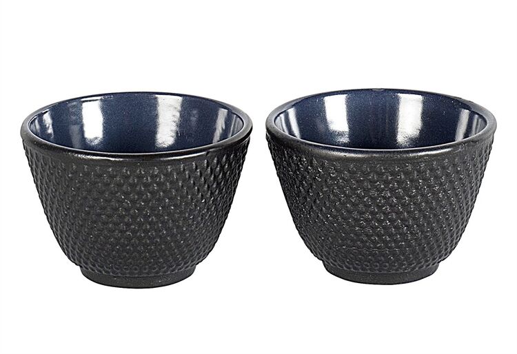 Das Set besteht aus zwei gusseisernen Teebechern, passend zur gusseisernen Teekanne 'Jang'. Die Teebecher haben an der Außenseite die typische Noppenstruktur und sind an der Innenseite emailliert.