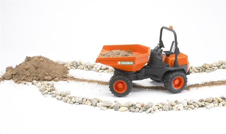 BRUDER ergänzt das überaus erfolgreiche Sortiment der kleineren Baufahrzeuge um einen so genannten Minidumper, Hierbei handelt es sich meistens um knickgelenkte, kompakte Maschinen, die den Transport von bis zu 4 Tonnen Last auf unebenen und schwer zugänglichem Gelände ermöglichen, Mit Hilfe des Allradantriebs und ihrer Knicklenkung wird eine enorme Wendigkeit erzielt, wobei alle vier Räder in ständigem Bodenkontakt gehalten werden, Als Vorbild für das neue BRUDER Modell dient der Dumper D 350 AHG der spanischen Firma AUSA, Wie das Vorbild, verfügt der BRUDER Dumper über eine Knicklenkung, eine drehbare Kippmulde und zeichnet sich, wie das Original, durch eine hohe Geländegängigkeit aus, Das Fahrzeug ist mit einer Heckkupplung ausgestattet, das ermöglicht die Kombination mit zahlreichen Anhängern des BRUDER Produktprogramms, Mit Knicklenkung, Mulde dreh- und kippbar, abnehmbare Heckkupplung, Profilreifen aus hochwertigen Kunststoffen, Maßstab 1:16, Geeignet für Kinder ab 3-8 Jahren, Maße: 26,7 x 12,4 x 17 cm
