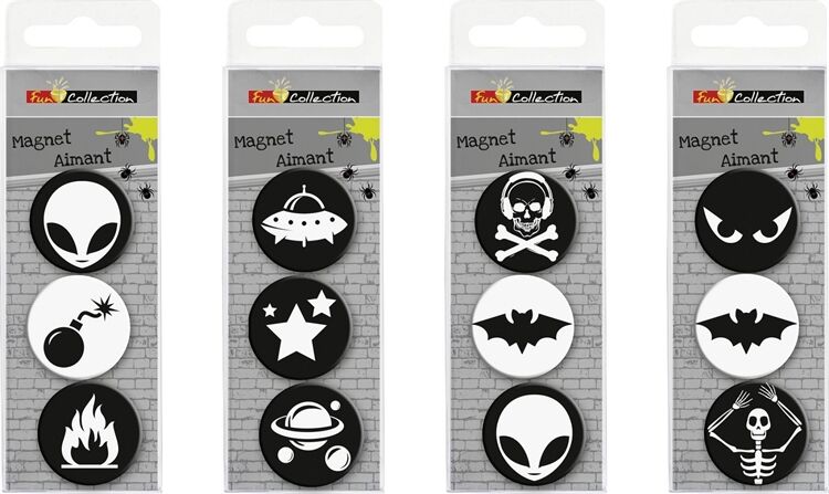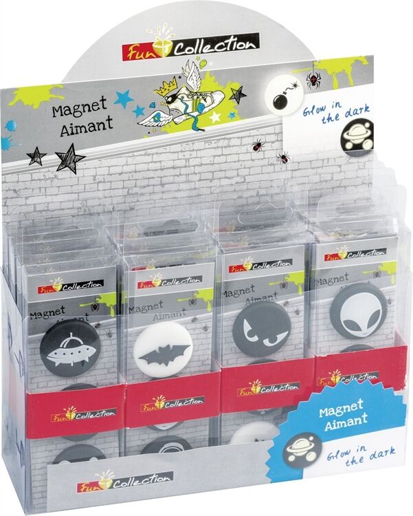 Magnet Glow · Fun Collection · Inhalt: 3er-Set · 8 Motive · leuchten bei Nacht · Ø 35 mm