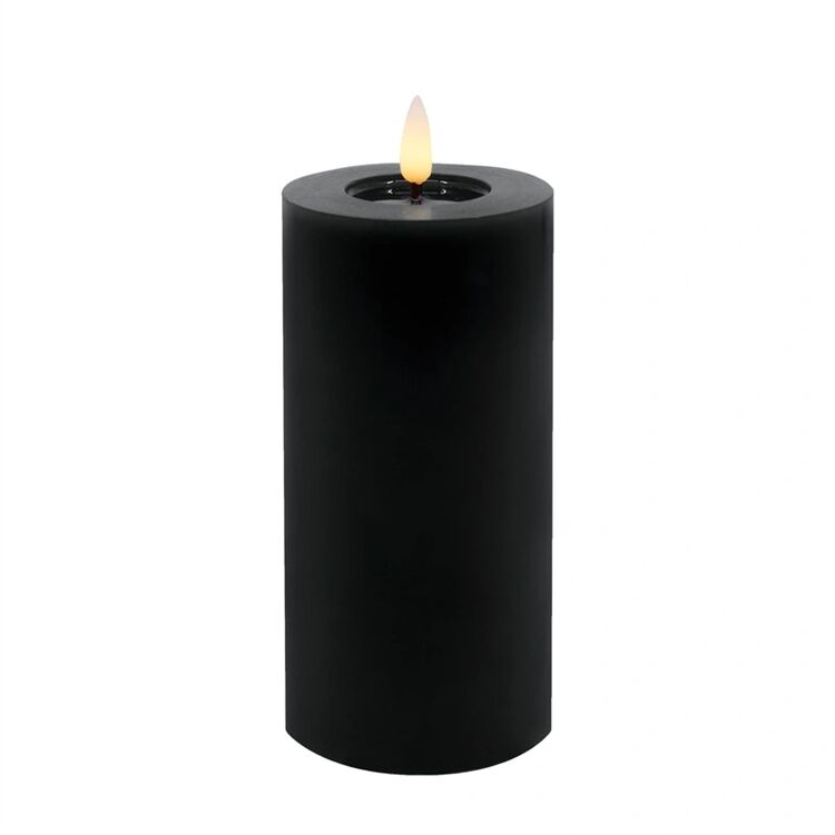LED Stumpenkerze Echtwachs Winter Black 7,5x15 cm