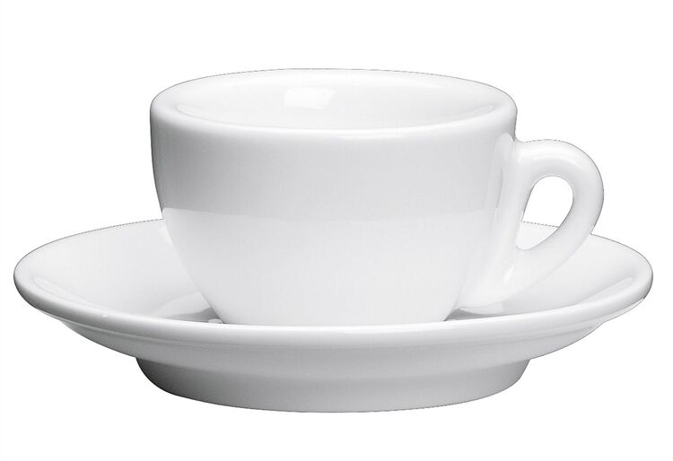 Espressotasse 'Roma' mit Untertasse, Porzellan, extra dickwandig, hält den Inhalt länger heiß, Farbe: weiß, Maße: Ø 7 cm, 50 ml, H 4,5 cm.