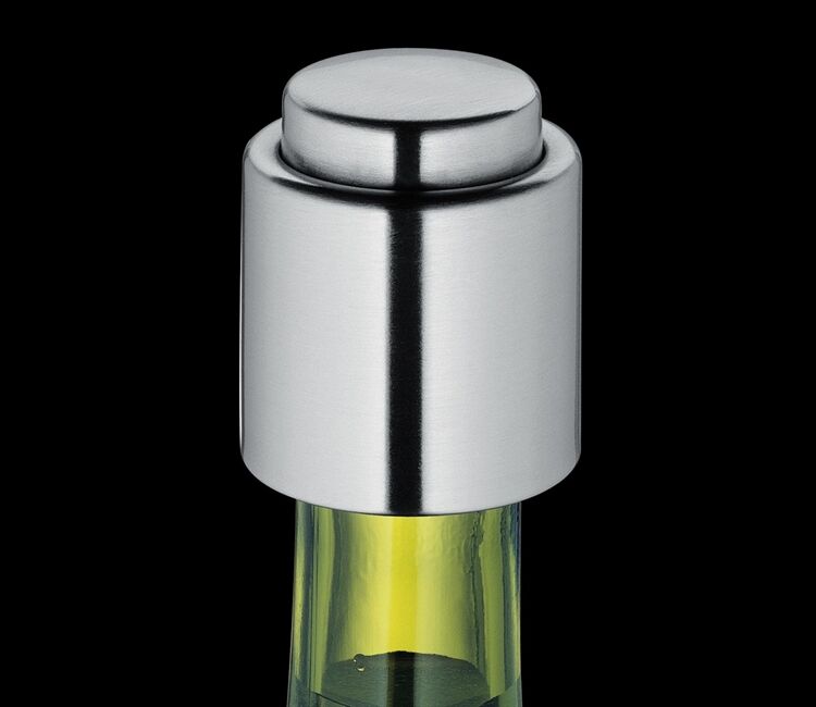 Wein- und Champagnerflaschenverschlüsse + luftdicht und tropfsicher + erhalten Geschmack und Qualität + auch mit farbigem Kunststoff Wenn Schaumwein abgestanden schmeckt, ist das nicht prickelnd. Wein, der offen gelagert wird, kippt und wird zu Essig. Die Wein- und Champagnerflaschenverschlüsse von cilio erhalten den Geschmack und die Qualität Ihrer hochwertigen Getränke. Die praktischen Helfer aus mattiertem Edelstahl sind leicht aufzusetzen, sie schließen luftdicht und tropfsicher. Das Modell SWITCH aus Edelstahl und Kunststoff bringt zusätzlich Farbe ins Spiel. Die modischen Verschlüsse kommen in schwarz, rot, grün und orange daher. Als Faustregel für Partys, Geburtstage und Empfänge gilt übrigens: Aus einer 0,75 Liter Flasche Sekt oder Champagner bekommen Sie sechs bis sieben Gläser. Haben Sie schon Blue Sky probiert? Für diesen Cocktail wird eine Flasche trockener Sekt mit 2 cl Obstgeist, 1 cl Blue Curaçao und einem Stück hauchdünner Orangenschale gemischt. Weinverschluss Material: Edelstahl matt Maße: Höhe: 4,5 cm Artikel-Nr.: 300871 Produkt in Geschenkverpackung