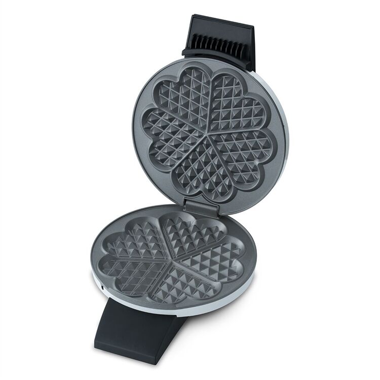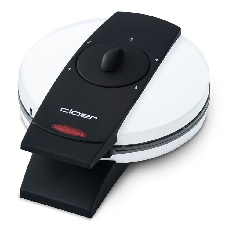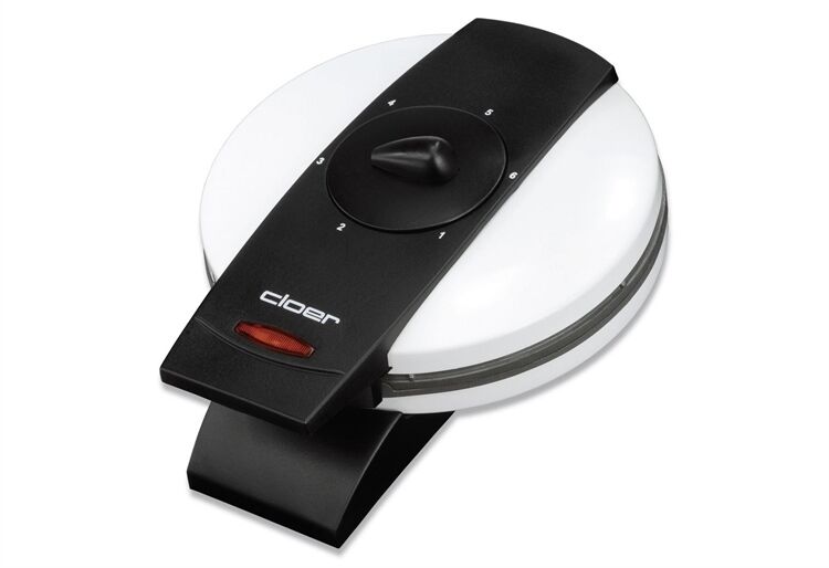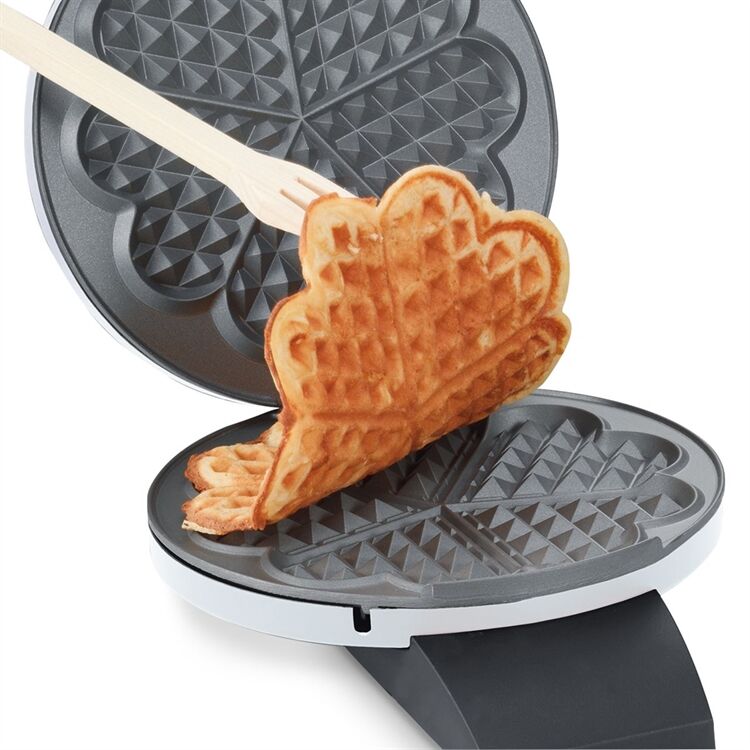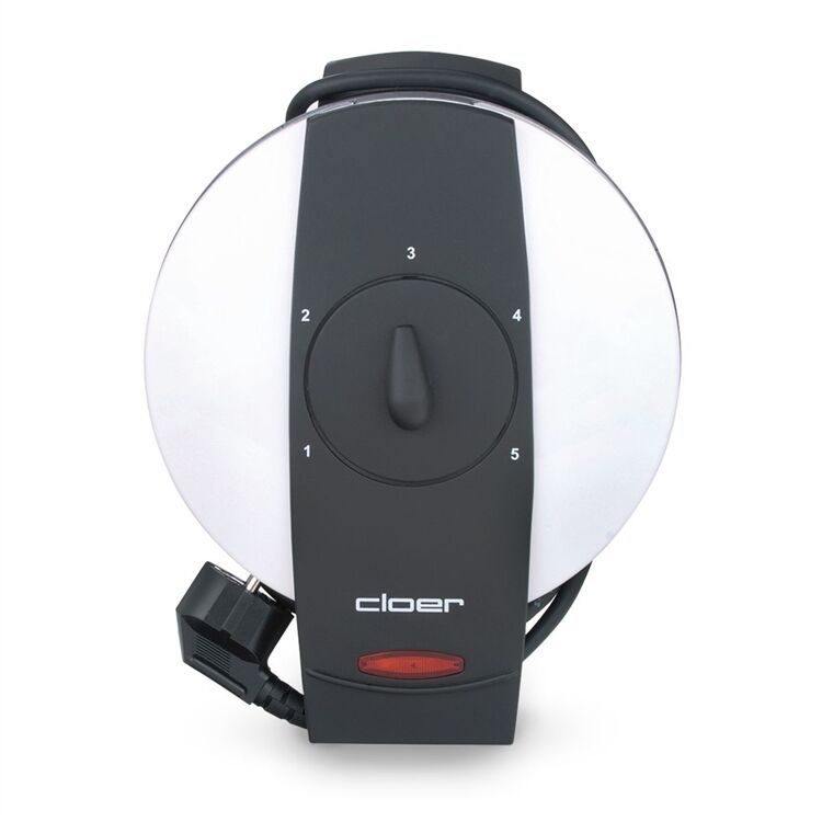 Der Waffelautomat 1621 von Cloer eignet sich zur Zubereitung einer großen Waffel mit Herzenmuster (Backfläche 16,5 cm). Das Gehäuse ist ein weiß-lackiertes Metall und somit leicht zu reinigen. Durch die Antihaftbeschichtung wird fettarmes Backen gewährleistet. Besonders praktisch beim Waffelautomat 1621 ist die optische Fertigmeldung und der frei wählbare Bräunungsgrad mit Drehregler. Der Waffelautomat 1621 ermöglicht durch das innenliegende Scharnier und die Fettauffangrille eine einfache Reinigung. Man kann ihn platzsparende, auf den Griffen stehend Aufbewahren und er hat auch noch eine Kabelaufwicklung mit Steckerdepot.
