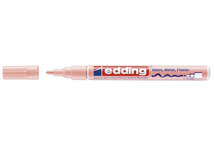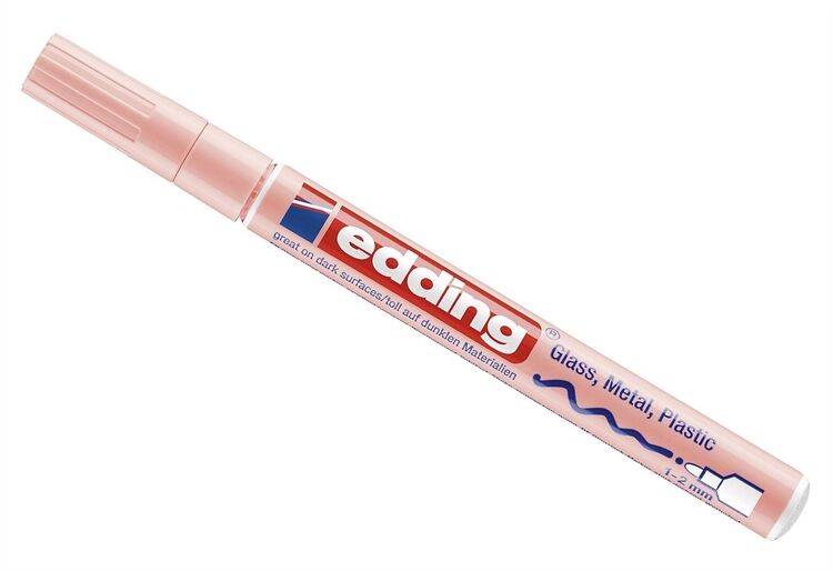 Glanzlack-Marker creative 751. Permanente, geruchsarme, lackartig deckende Tinte ohne Zusatz von Xylol Toluol, wasserfest , Hitzebeständig bis 400°. Rundspitze, Spitze austauschbar . Folienversiegelung. Laufbeschriftung enthält Piktogramme zur Anwendungserklärung für das Aktivieren der Lackmarker. Extrem Lichtbeständig. Stark deckend auch auf dunklen Oberflächen. Haftet auf glatten und porösen Oberflächen.. Schaftmaterial: Aluminium. Schaftfarbe: pastellrosa. Strichstärke: 1 - 2 mm. Schreibfarbe: pastellrosa.