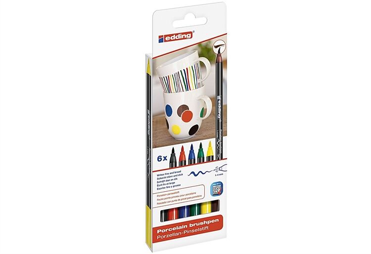 Fasermaler für das Gestalten von Porzellan, glasierter Keramik und ofenfestem Glas. Nach dem Einbrennen ist die Bemalung spülmaschinenfest bis 60°C. Strichbreite von 1-4 mm.