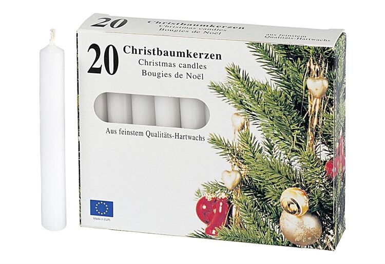 Baumkerze 9,6cm Ø1,2cm weiß 20 Stück