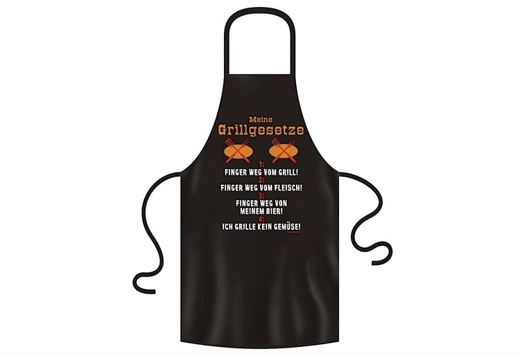 Jeder Grillmeister braucht klare Grillgesetze, um ordentlich arbeiten zu können. Mit dieser Grillschürze aus 100% Baumwolle machen Sie auch den unwissenden Neuzugängen klar: 1.Finger weg vom Grill!, 2.Finger weg vom Fleisch!, 3. Finger weg von meinem Bier!, 4. Ich grille kein Gemüse!