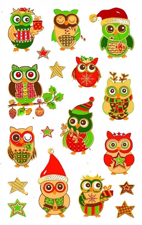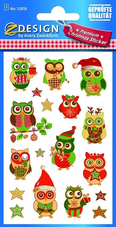 Weihn. Sticker Eulen 18 Stück