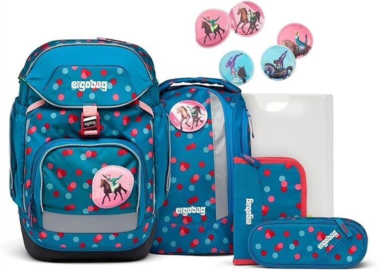 Ausgeklügelt bis ins letzte Detail: Der ergobag pack passt sich an große und kleine Entdeckerinnen und Entdecker, viel und wenig Inhalt an und lässt sich leicht öffnen. So bleibt immer alles an seinem Platz und sitzt einfach perfekt. Ein tolles Plus: dank integrierter Heftebox heißt es außerdem „Tschüss Eselsohren!“. 6-teiliges Set Höhenverstellbares Tragesystem "Your-Size-System" Hoher Tragekomfort durch breite, gepolsterte Beckenflossen Gute Sichtbarkeit durch Reflektoren rundherum Fest angenähte Seitentaschen Loop zum Anbringen von Hangies Fahrkartenfach am Beckengurt Kinderleichtes Öffnen und Schließen durch Magnetschnalle Individualisierbar durch Kletties, Hangies, Zippies und Zip-Sets Hauptstoff: 100% Polyester Aus 39 recycelten PET-Flaschen (0,5 l) Wasser- und schmutzabweisend Pflegehinweise: Nicht waschen, nicht bleichen, nicht im Trockner trocknen, nicht bügeln, nicht trockenreinigen