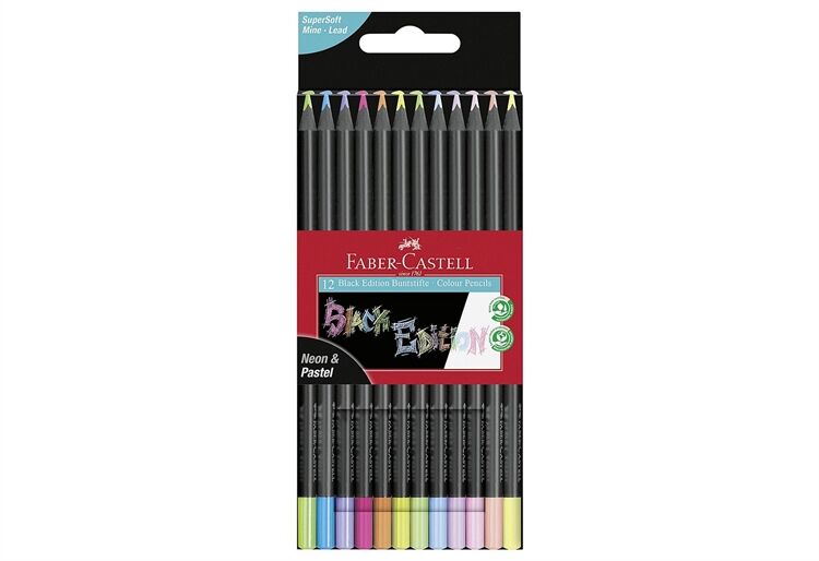 Leuchtende Neonfarben und softe Pastellfarben in einem Set. Supersoft-Mine für farbintensive Effekte. Buntstifte mit ergonomischer Dreikantform. Extra weicher Farbabstrich. Bruchgeschützte Mine durch Spezialverleimung. Holz aus zertifizierter nachhaltiger Fortwirtschaft. Klimaneutral produziert. 12er Kartonetui