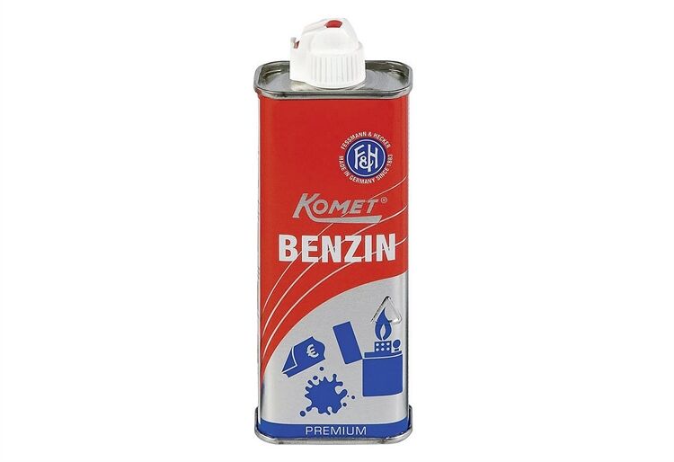 Komet Spezialbenzin, Dose 125 ml, hochreines Spezialbenzin für alle Benzinfeuerzeuge sowie benzinbefeuerte Kleingeräte, z. B. Taschenöfen geeignet für Reinigungszwecke oder zum Entfernen von Etiketten und Klebstoffresten. verbrennt nahezu ruß- und geruchsfrei. sparsamer Verbrauch, kindergesicherter Kipphebelverschluss