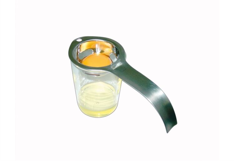 Der Eidottertrenner trennt Eidotter vom Eiweiß spielend leicht und mit der zusätzlich angebrachten Kante lassen sich die Eier leicht aufschlagen. Zur Herstellung von Eischnee ist der Eidotter-Trenner ein unentbehrliches Produkt. Durch seine optimale Verarbeitung ist dieser sehr stabil und spülmaschinengeeignet.