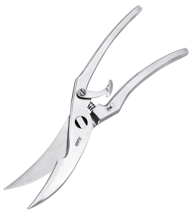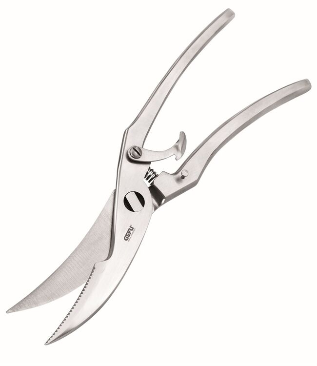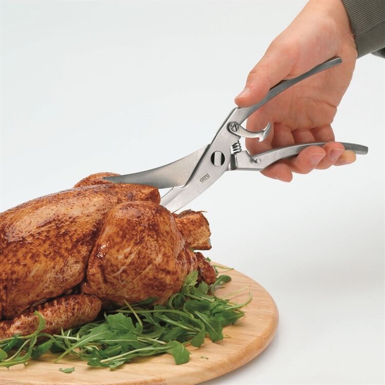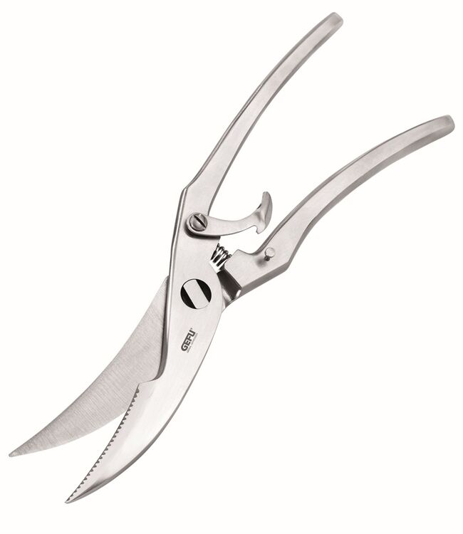 Mühelos und sauber zerteilt die Geflügelschere das Bratgut in die gewünschten Portionen. Ein ansprechendes Design und die scharfen Schneidzähne sind weitere Pluspunkte. Zur Reinigung lässt sich die Geflügelschere ganz einfach zerlegen und zur Aufbewahrung arretieren.