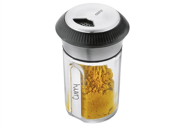 Der formschöne Küchenhelfer mit Doppelnutzen: ein Glaskorpus mit luftdicht verschließbarem Deckel bewahrt das volle Aroma von duftenden Gewürzen wie Curry- oder Paprikapulver, von getrockneten Kräutern und wertvollem Tee, der drehbare Streukopf des Deckels ermöglicht perfektes Dosieren von grob bis fein.