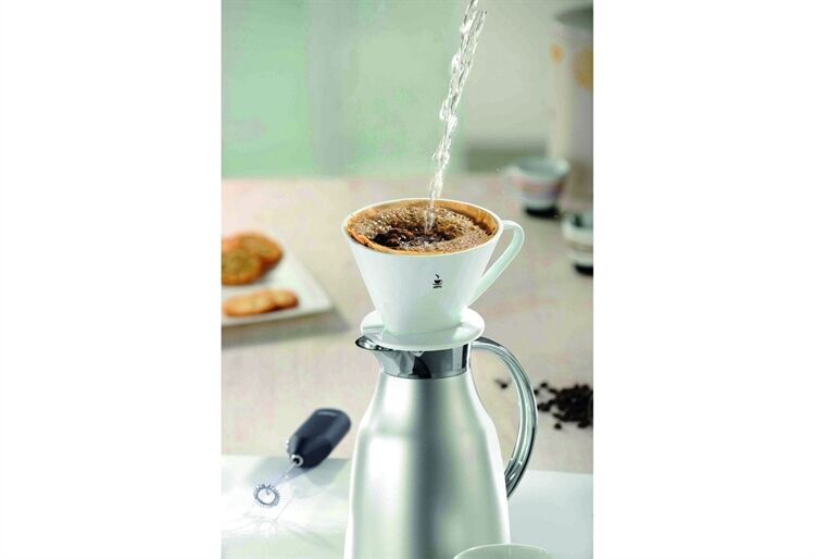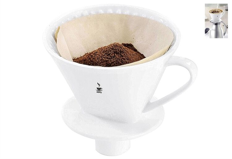 Kaffee auf Knopfdruck - klar, Vollautomaten werden immer selbstverständlicher. Aber gleichzeitig attestieren Trend-Auguren dem von Hand aufgebrühten Filterkaffee eine Renaissance! Und deshalb gibt es den Porzellan-Kaffee-Filter SANDRO, Gr. 4. Abgestimmt auf die handelsüblichen Papierfiltertüten Gr. 4, wird Kaffeemehl hineingegeben, mit etwas heißen Wasser zum Quellen gebracht - und dann schüttet man nach und nach heißes Wasser drüber. Durch den verlängerten Stutzen hat SANDRO in Isolierkannen guten Halt - und der Kaffee bleibt während des Aufbrühens heiß. Der weiße Porzellan-Filter ist natürlich spülmaschinengeeignet!