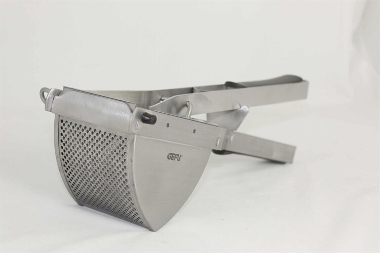 Kartoffelpresse PANTARA Artikel-Nr. 89145 Zum Pressen von gekochten Kartoffeln Mit schwarzer Kunststoffgriffeinlage Edelstahl/Kunststoff Spülmaschinengeeignet Die Kartoffelpresse für mehr gesunde Frische. Denn der sicherste Weg zu gesünderer Ernährung ist die Zubereitung von Speisen mit frischen Zutaten. Mit gekochten Kartoffeln, Butter, sahniger Milch und natürlichen Gewürzen haben Sie in wenigen Handgriffen m0t der GEFU Kartoffelpresse ein frisches, flockiges Kartoffelpüree zubereitet.