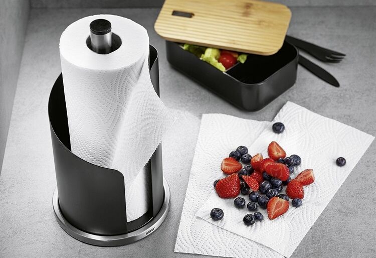 Der hochwertige, geschwungene Küchenrollenhalter CURVE aus schwarzmattem Edelstahl sieht nicht nur besonders gut aus, sondern ist auch besonders praktisch. Dank seiner schweren Konstruktion kippt und rutscht er nicht, das Küchenpapier lässt sich dadurch leichter Abrollen und mit nur einer Hand abreißen.