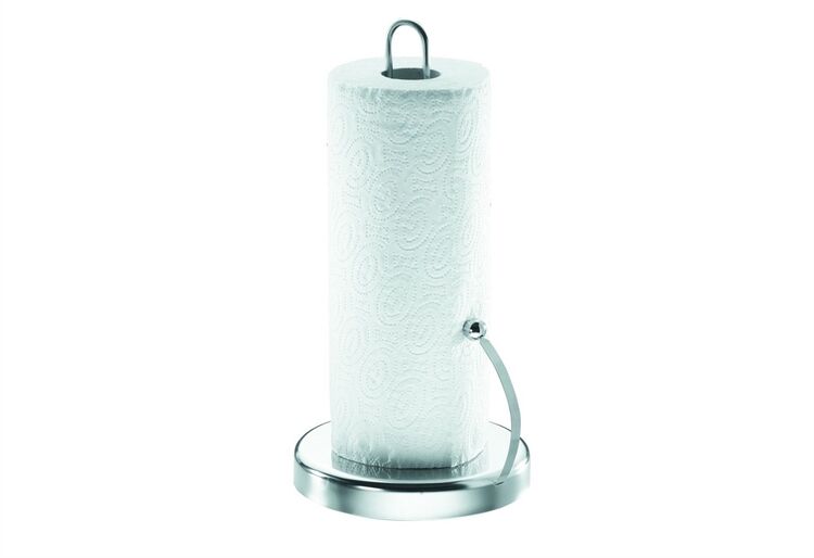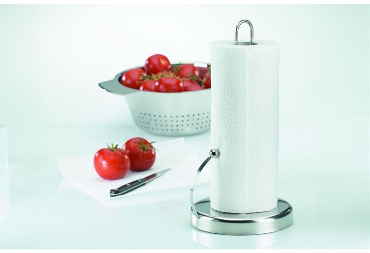 Der praktische Küchenrollenhalter ist auch dann einsatzbereit, wenn man gerade nur eine Hand frei hat. Sein schwerer Sockel verhindert ein Kippen oder Rutschen und beweist Standfestigkeit. Dank der flexiblen Haltefeder rollt das Papier nicht von alleine ab und die Blätter sind leicht abreißbar. Gearbeitet aus rostfreiem Edelstahl, absolut robust, in edlem Design. 1 Papierrolle ist in der Verpackung enthalten.