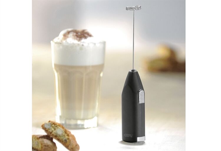 Cremiger Milchschaum per Knopfdruck! Der batteriebetriebene Milchaufschäumer sorgt mit max. 12.000 U/Min für ein perfektes Quirlergebnis. Er besteht aus Kunststoff und Edelstahl und die zwei notwendigen Batterien sind im Paket enthalten. Zudem hat er eine Länge von 20 cm und die Soft-Touch Oberfläche erleichtert die Handhabung.