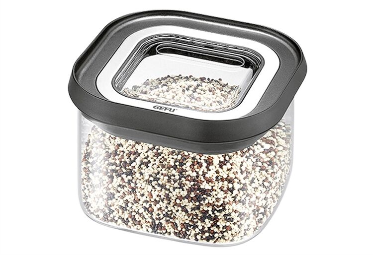 Edel, elegant und praktisch zugleich: die Vorratsdosen PANTRY halten Lebensmittel länger frisch, sind individuell stapelbar und sehen dazu noch super aus. Der Deckel schließt luftdicht und hält das Aroma – von aromatischen Gewürzen, über leckere Müslis bis hin zu Nudeln. Das praktische Deckelfenster erleichtert die perfekte Vorratskontrolle auf einen Blick. Produkteigenschaften: Silikondichtung im Deckel für aromasichere Aufbewahrung und Bevorratung von Lebensmitteln | Glasbehälter mit Sichtfenster im Deckel sorgt überall für guten Überblick über Inhalt und Menge | inkl. 3 beschriftbarer Aufkleber | platzsparend stapelbar und individuell kombinierbar |Behälter aus hitzebeständigem und robustem Borosilikatglas | spülmaschinengeeignet. Produktmaße: 400 ml, (LxBxH): 11x11x7,5 cm.
