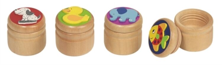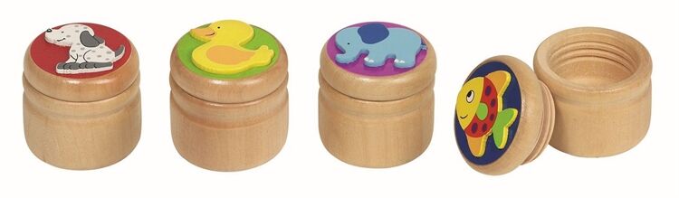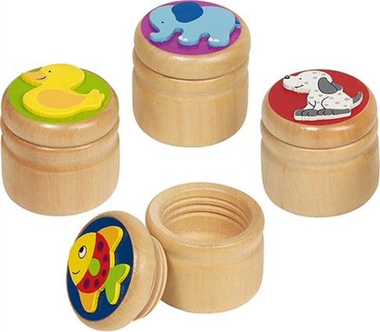 Milchzahndose Elefant, Ente,,,, = 4 cm, H= 3,9 cm, Holz, 4fach sortiert, Marke: Standard,
