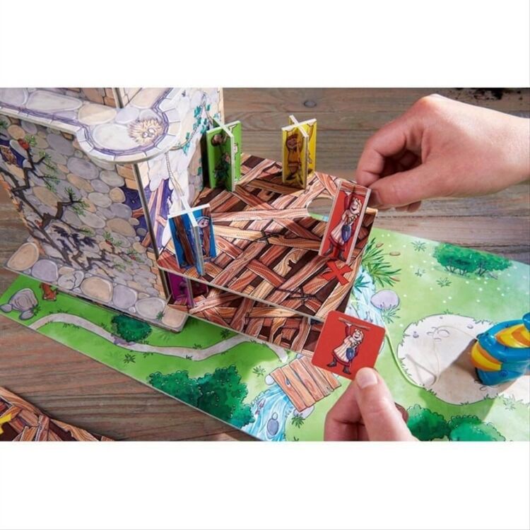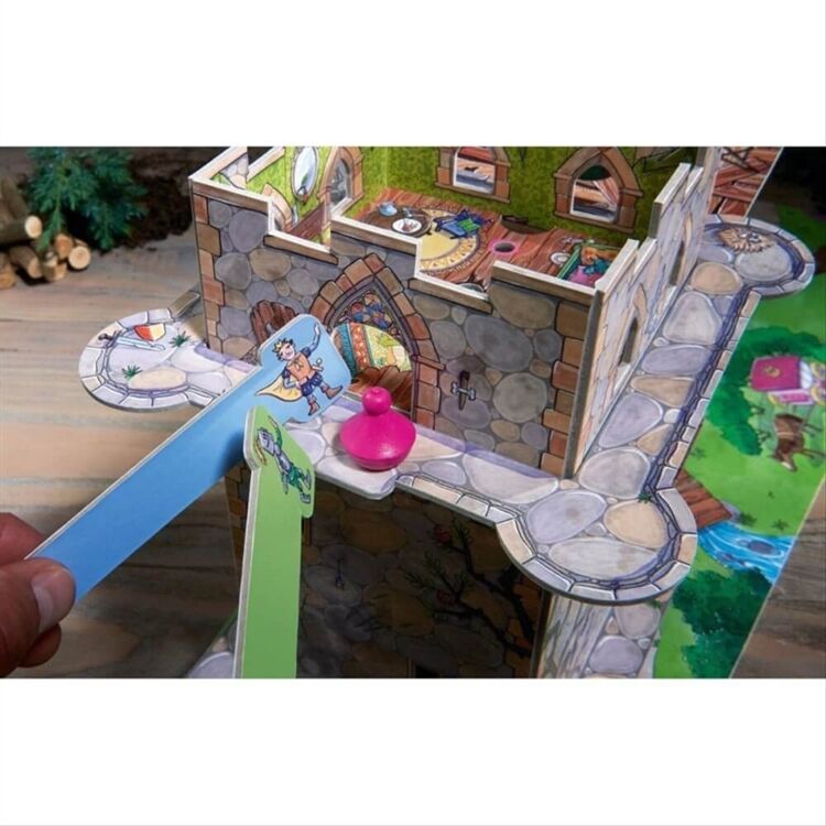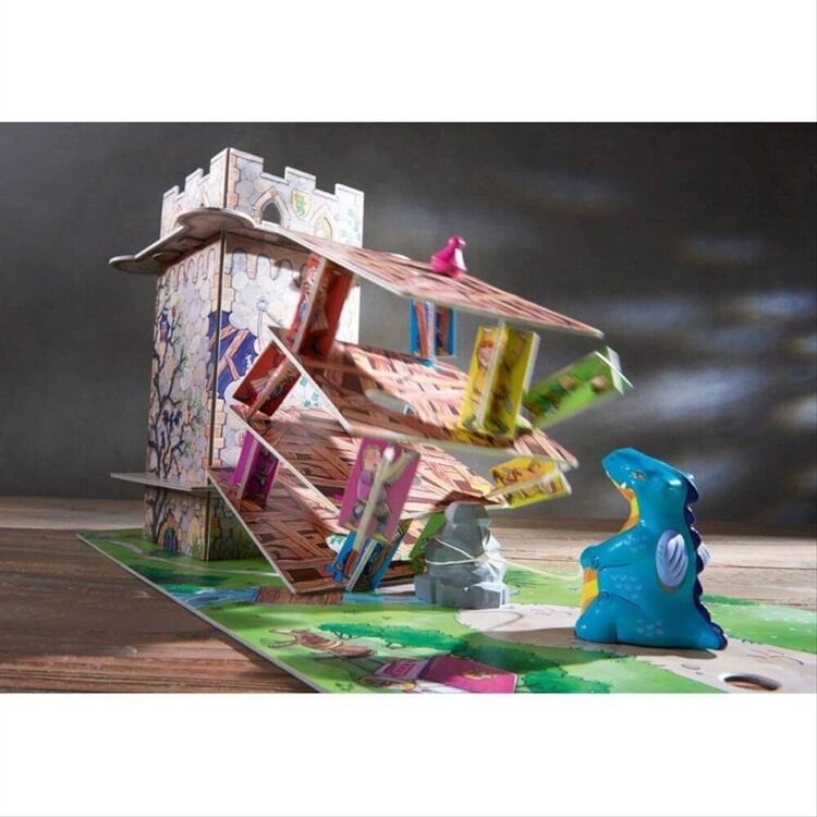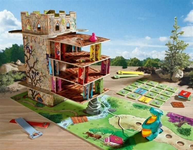 Der furchterregende Drache hat die Prinzessin in seinen Turm gesperrt. Sofort eilen der Prinz und seine Gefährten zu Hilfe. Nur mit einem guten Gedächtnis und viel Geschick schafft ihr es gemeinsam die Prinzessin zu retten, bevor der Drache alles zum Einsturz bringt. Für 2-4 Spieler. Ab 5 Jahren.