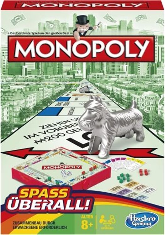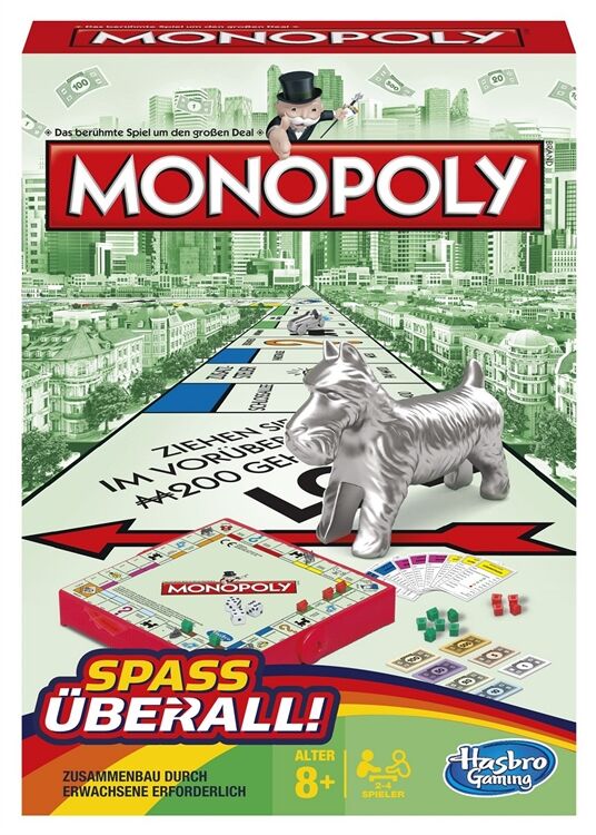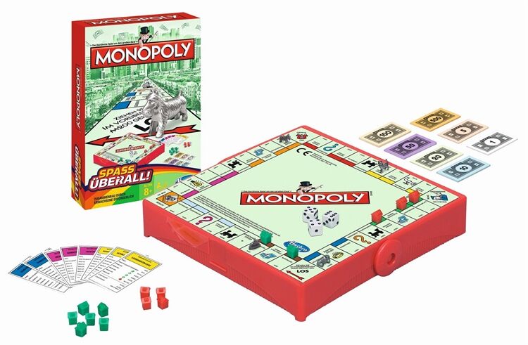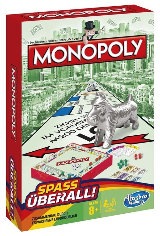 Hasbro B1002 Monopoly Kompakt, Mit den Kompaktspielen von Hasbro ist der Spaß überall dabei, Auf der Reise, im Urlaub, beim Ausflug # die beliebtesten Spieleklassiker im handlichen Taschenbuchformat sorgen für jede Menge Spiel und Spaß und sollten in keinem Reisegepäck fehlen, Monopoly Kompakt # der berühmte Spieleklassiker geht mit auf die Reise! Wenn's unterwegs mal etwas länger dauern darf, ist es Zeit für Monopoly! Das beliebte Brettspiel rund um Geld, Macht und Besitz begeistert seit Generationen und sorgt mit der gehörigen Portion Spannung für den richtigen Nervenkitzel, Wer ist der Moneymaker, wer der Pleitegeier? Diese Kompaktausgabe von Monopoly enthält alles für das unvergleichliche Monopoly-Feeling auf der Reise und ist der ideale Zeitvertreib für die ganze Familie! Für 2-4 Spieler, Für Kinder ab 8 Jahren,