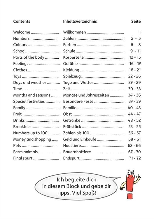 Spielerisch und abwechslungsreich lernen die Schüler mit diesem Block viele englische Wörter, kurze Sätze und einfache Phrasen kennen. Die Themen orientieren sich an den Lehrplänen des Englischunterrichts, sodass Lernbereiche passend wiederholt und vertieft werden können. Durch vielseitige und kindgerechte Übungen prägt sich der Wortschatz der Fremdsprache gut ein. Auf den letzten Seiten gibt es die Lösungen zu allen Aufgaben.