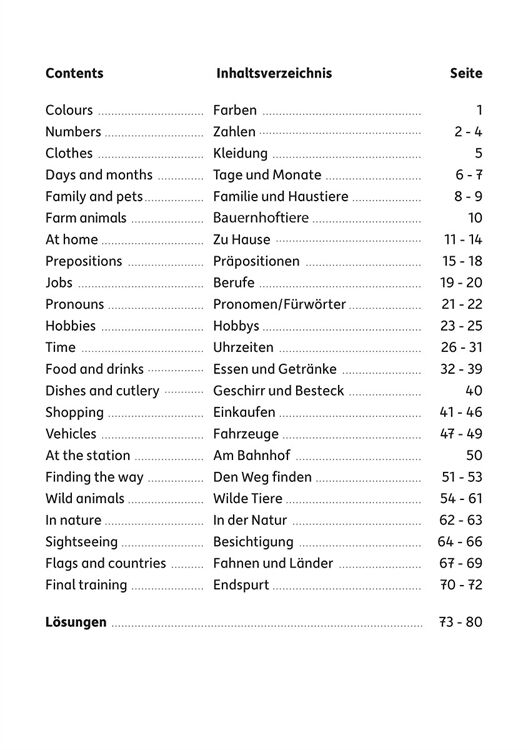 Mit vielen Bilder und spielerischen Aufgaben wird das Lernen der ersten Fremdsprache in diesem Block zum Vergnügen! Die abwechslungsreichen Übungen ermöglichen den Kindern, den gelernten Wortschatz zu wiederholen und zu erweitern. Das Wortmaterial wird inhaltlichen Themenblöcken zugeordnet, sodass die Schüler parallel zum Schulunterricht damit arbeiten können. Inhaltliche Bereiche sind zum Beispiel Farben, Zahlen, Hobbys, Essen, Einkaufen, Uhrzeiten und Tiere. Der Block ist auch hervorragend als Vorbereitung für eine weiterführende Schule geeignet.