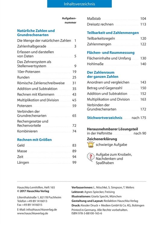 Der Beginn der neuen Schule bringt für die Kinder neue Herausforderungen und vielleicht auch so manche Unsicherheit. Mit diesem Heft können die Kinder Themen, die im Matheunterricht behandelt worden sind, wiederholen und üben und ihr mathematisches Wissen und Können vertiefen. So fühlen sie sich gestärkt für den Unterricht und anstehende Klassenarbeiten. Folgende Themenbereiche sind in dem Heft enthalten: Natürliche und ganze Zahlen, Grundrechenarten, Terme, Rechnen mit Größen, Umgang mit Diagrammen und Kombinatorik. Im herausnehmbaren Lösungsteil gibt es vollständige und zum Teil anschaulich dargestellte Lösungswege, sodass die Schüler selbstständig ihre Rechenwege nachvollziehen und überprüfen können.