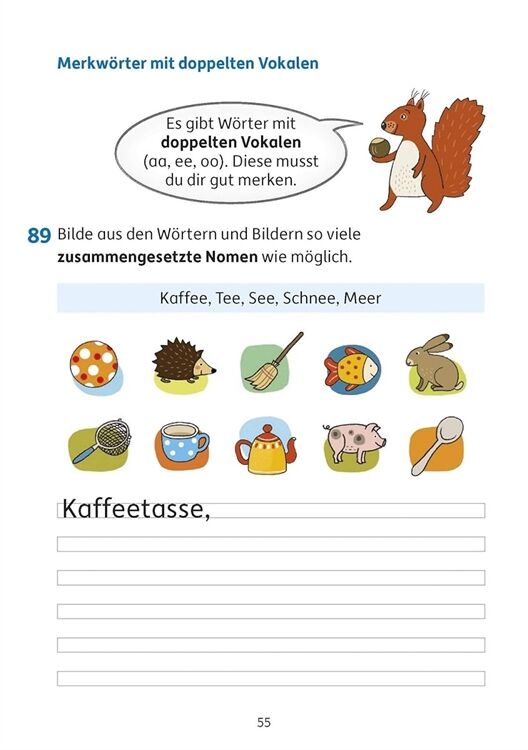 Richtig schreiben ist eine grundlegende Fähigkeit, die so früh wie möglich bei Kindern gefestigt werden sollte. Daher brauchen viele Kinder auch neben der Schule Zeit und Material, um gezielt üben zu können. Dieses Heft bietet vielfältige Übungsmöglichkeiten, basierend auf dem Grundwortschatz der 3. Klasse. Beim Üben werden die Kinder von Eichhörnchen Molli begleitet, das ihnen mit Rat und Tat zur Seite steht. Es vermittelt ihnen bestimmte Rechtschreibstrategien, die den Kindern helfen, typische Fehler zu vermeiden und auch unbekannte Wörter richtig zu schreiben. Kindgerechte Diktate sowie Tipps und Anregungen zum Üben runden das Heft ab. So macht Lernen einfach Spaß!