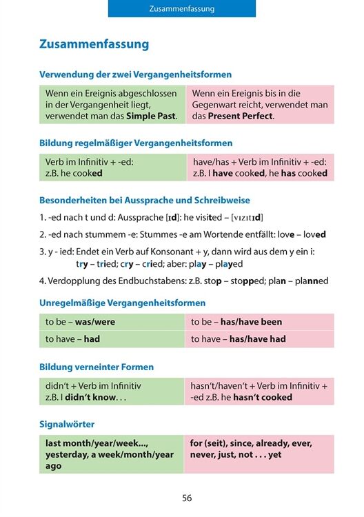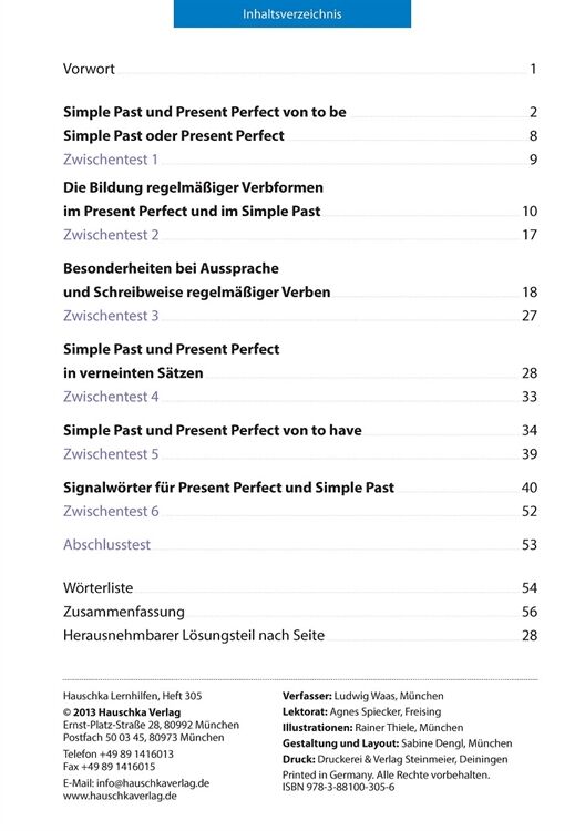 Die unterschiedlichen Zeiten im Englischen richtig zu verwenden, bereitet oft Schwierigkeiten. In dieser Lernhilfe werden die beiden Vergangenheitsformen Simple Past und Present Perfect gegenübergestellt und unterschieden. Die Bildung der Verbformen, Merkmale und Signalwörter zur Verwendung der Zeiten werden in überschaubaren Lernportionen geübt. Zwischentests und ein Abschlusstest geben Rückmeldung über den Lernerfolg. Eine Wörterliste erleichtert die Arbeit mit diesem Heft, das unabhängig von einem Lehrbuch aufgebaut ist.