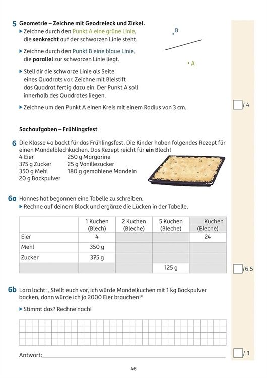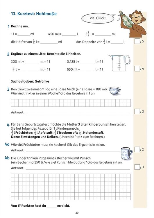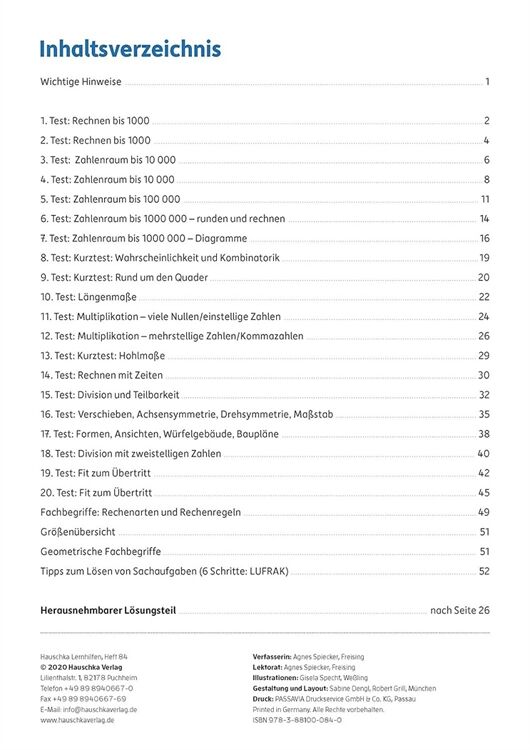 Keine Angst vor Klassenarbeiten! Mit diesem Heft können alle Mathetests gut vorbereitet werden. In 20 Übungstests, die nah an realistischen Klassenarbeiten angelehnt sind, können die Schüler ihr Wissen überprüfen und sich anhand einer Punkteskala selbst bewerten. Die Inhalte richten sich nach Lehrplänen und Bildungsstandards und schließen alle Kompetenzbereiche ein: Grundrechenarten, Zahlenraumerweiterung bis 1 000 000, Größen und Sachaufgaben, Geometrie, Zufall/Wahrscheinlichkeit/Kombinatorik. Ausführliche und schülergerechte Lösungswege machen es möglich, dass die Kinder ihre Fehler nachvollziehen können. In einer Übersicht am Ende des Heftes werden wichtige Regeln und Fachbegriffe zusammengefasst.