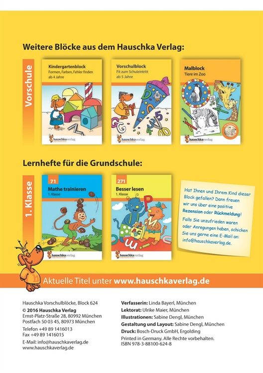 In diesem Block darf nach Herzenslust gerätselt und geknobelt werden. Mit viel Spaß und Freude arbeiten sich die Kinder durch die Aufgaben und schulen so ihr logisches Denkvermögen und ihre Wahrnehmung. Gleichzeitig werden Konzentration, Motorik und genaues Hinsehen gefördert. Alle Aufgaben sind liebevoll und kindgerecht illustriert und bieten eine ideale Vorbereitung auf die Vor- und Grundschule. Durch das handliche Format ist der Block der ideale Begleiter für zuhause und unterwegs!