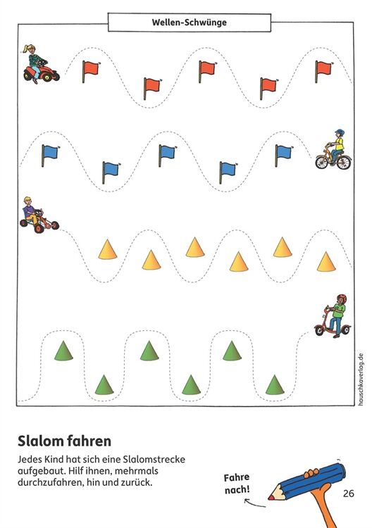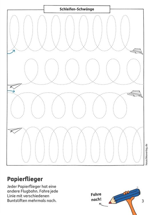 Zahlreiche und abwechslungsreiche Schwung- und Nachfahrübungen trainieren die Feinmotorik der Kinder und bereiten diese auf das Schreiben in der Schule vor. Gleichzeitig üben die Kinder konzentriert und genau zu arbeiten. Außerdem bietet der Block ein kleines Kartenspiel zum Ausschneiden und viele Anregungen zur weiteren Übung. Durch das handliche Format ist der Block der ideale Begleiter für zuhause und unterwegs!