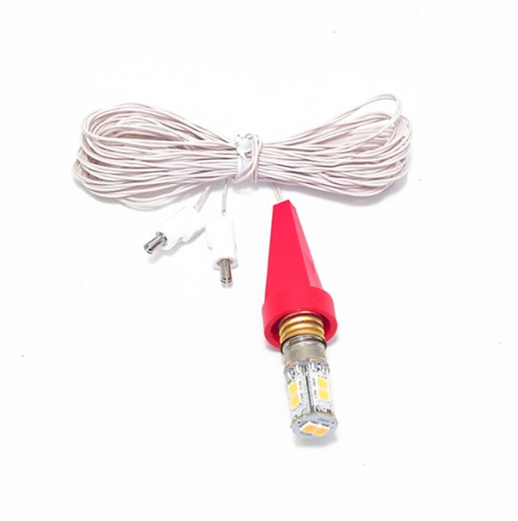besteht aus: ca. 3m Kabel, Befestigungskappe, Anschlussbuchsen, Fassung E10 und LED Leuchtmittel (6,3V-0,5W)