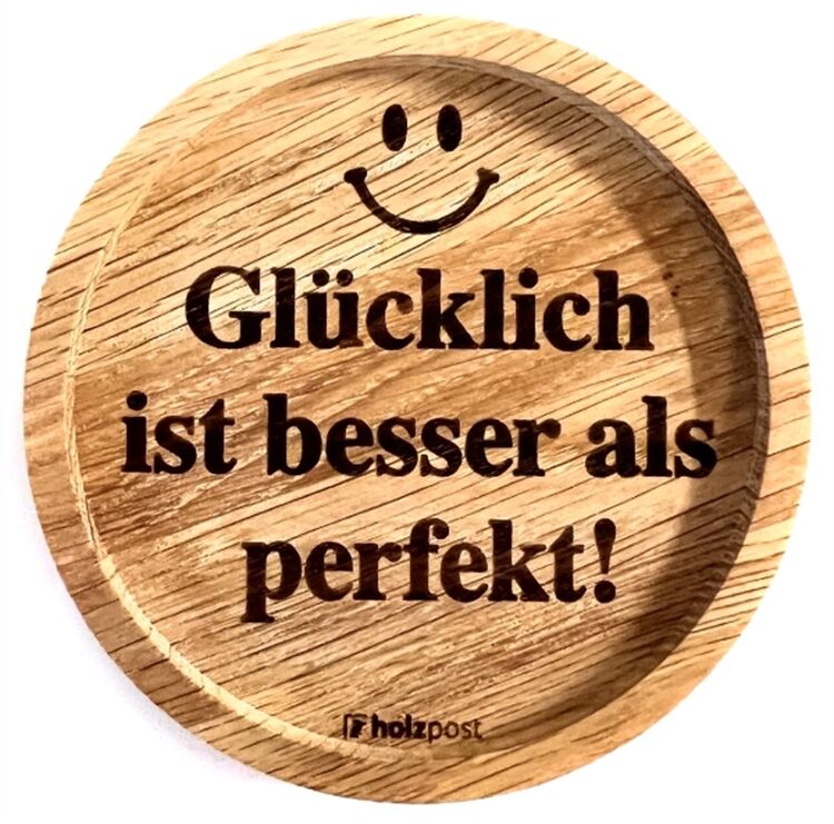 Untersetzer aus EICHE "Glücklich ist besser als p"