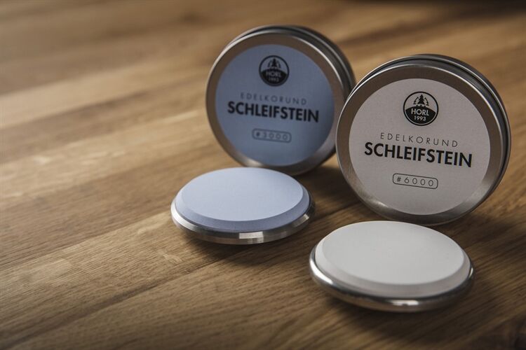 Die Edelkorund Schleifscheiben mit #3000er und #6000er Körnung sind dazu gedacht, den Schliff der Diamantseite des Rollschleifers weiter zu verfeinern. Einfach auf den Rollschleifer aufgeschraubt, können Sie in kürzester Zeit mit feinen Steinkörnungen Ihre hochwertigen Küchenmesser zur maximalen Schärfe bringen. Die Steine können ohne Wasser benutzt werden. Nach Abschließen des Schleifvorgangs wird das Messer über das HORL Leder für die finale Schärfe abgezogen.