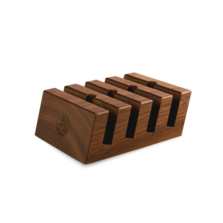 Optimale Aufbewahrung für HORL Rollschleifer Schleifscheiben. Aus einem massiven Block im Schwarzwald gefertigt. Feine Fasen veredeln die exklusive Optik. Kapazität für vier Schleifscheiben. Produkt wird ohne HORL Schleifscheiben geliefert.