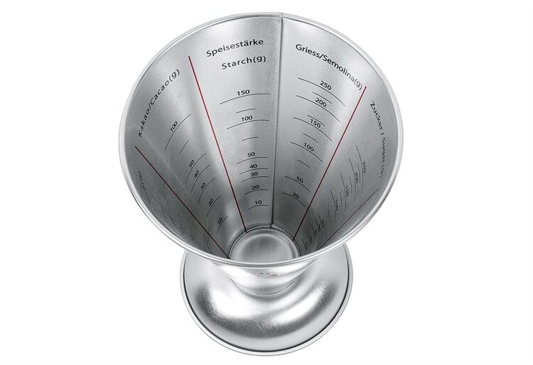 Der Patisserie-Messbecher aus Metall ist der perfekte Küchenhelfer für den Hobby-Bäcker. Er zeichnet sich durch hohe Qualität und Formstabilität aus. Die integrierte Skalierung für z.B. Mehl, Gries und Flüssigkeiten macht das Ablesen kinderleicht. Nach Gebrauch kann der Messbecher problemlos in der Spülmaschine gereinigt werden.