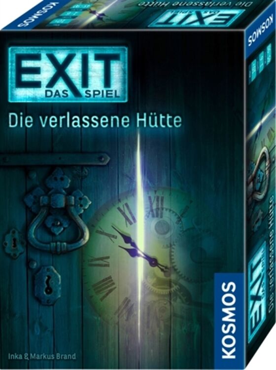 Kosmos EXIT für Fortgeschrittene: Eigentlich sollte die Hütte nur als Unterschlupf für eine Nacht dienen, Aber am Morgen ist die Tür plötzlich mit einem Zahlenschloss gesichert, Die Kombination der Zahlen ist den Spielern unbekannt, Die Fenster sind vergittert, Eine rätselhafte Drehscheibe und ein geheimnisvolles Buch scheinen ein erster Hinweis zu sein, Schaffen es die Spieler damit aus der Hütte zu flüchten?