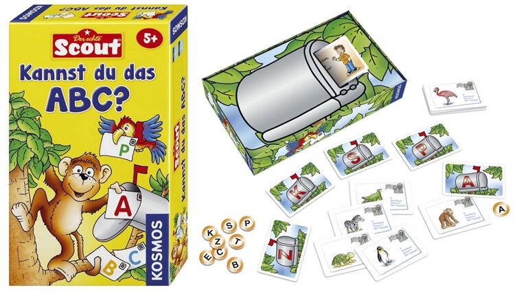 Tierisches Merkspiel für 2 bis 4 Spieler ab 5 Jahren. Juhu, da freut sich Alex Affe, denn sein Freund Paul Pinguin hat ihm geschrieben! Hilf mit und verteil die Postkarten an die Tiere. Jede Abc-Karte zeigt den Anfangsbuchstaben eines Tieres. Drehst du die Karte um, siehst du, ob du die Postkarte dem richtigen Tier gebracht hast! Inhalt: 26 Postkarten, 26 Abc-Karten, 28 Abc-Chips, 1 Briefkasten, 1 Spielanleitung