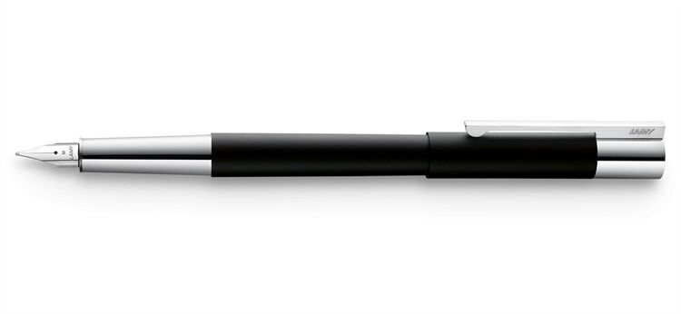 Hochwertiger Füllhalter mit Kappe. Aus Edelstahl gefertigt In mattschwarz lackiertem Finish. Griffstück und Clip hochglanz verchromt Mit hochwertiger Feder aus poliertem Edelstahl. Mit Großraumpatrone LAMY T 10 blau, löschbar (umrüstbar für Konverter Z 27).